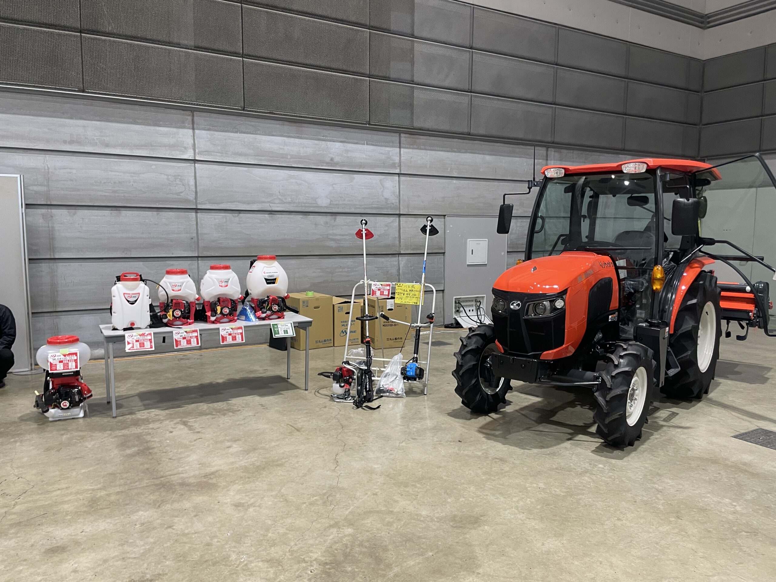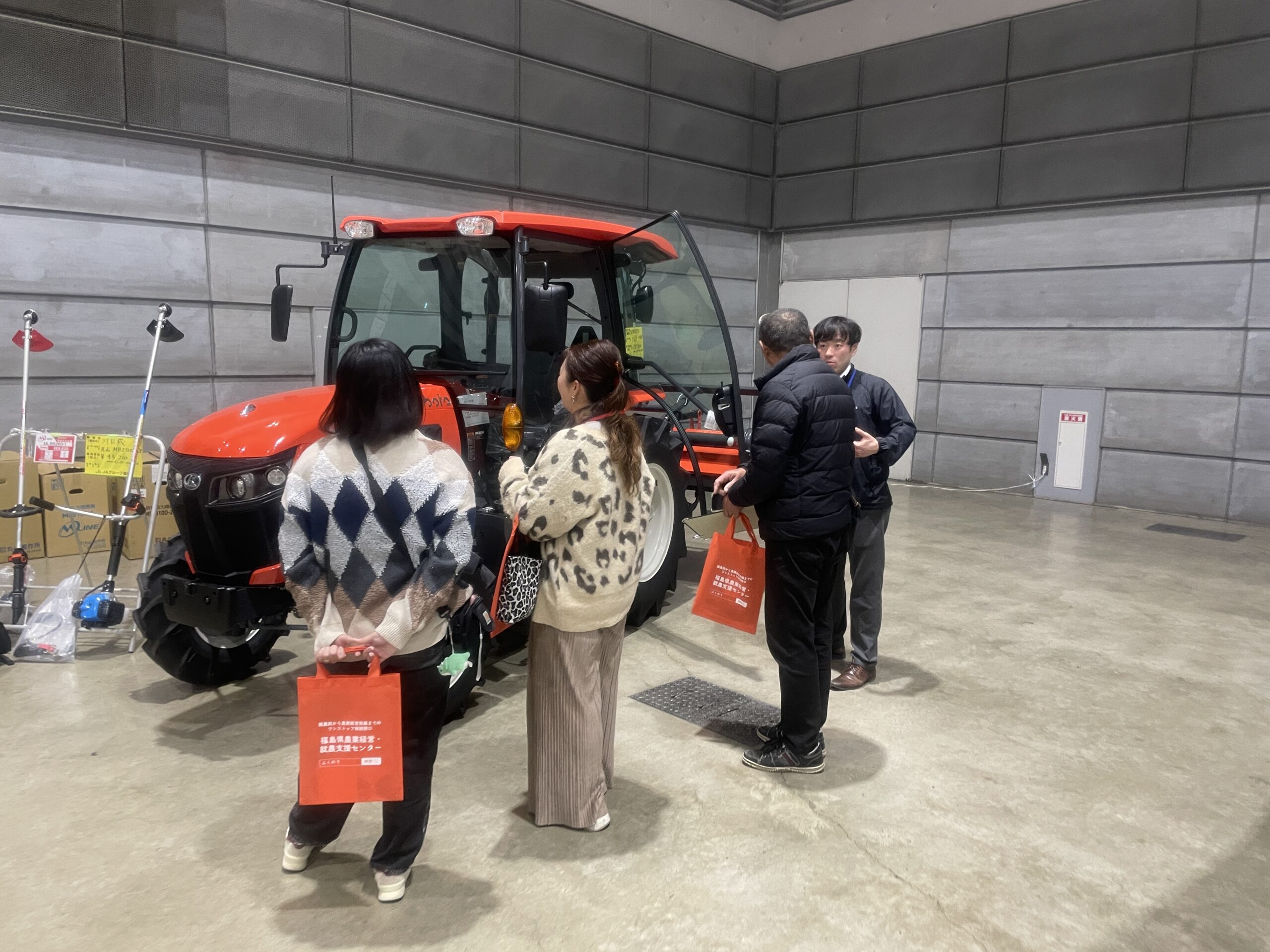 また、郡山会場では、昨年度ご好評いただいた農機具の展示エリアを設置、今回はトラクターの展示もありました。